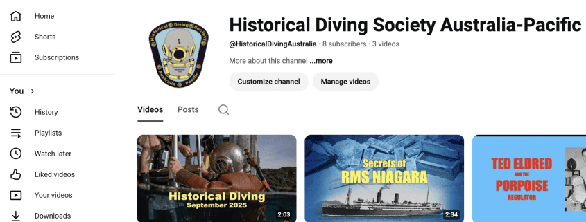 We have started a YouTube Channel to upload the latest videos to historical diving from around the world, dive days, events as well as interesting old film and equipment. Make sure you subscribe: https://www.youtube.com/@HistoricalDivingAustralia